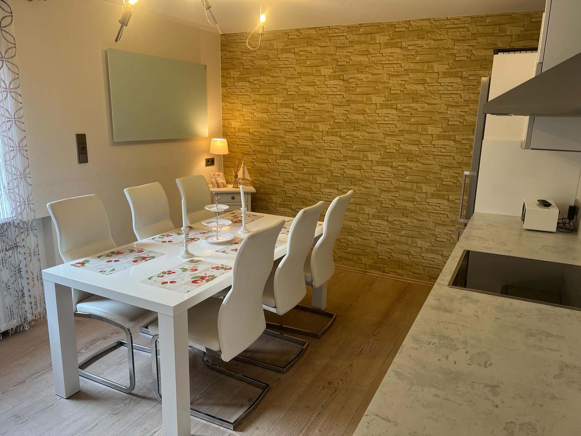 Das Apartment Bleyer bietet Ihnen zahlreiche Annehmlichkeiten, um Ihren Aufenthalt so angenehm wie möglich zu gestalten. Genießen Sie das kostenlose WLAN und die vorhandenen Parkplätze. Die stilvoll eingerichteten Räume sind mit hochwertigen Möbeln, Bettwäsche und Decken ausgestattet. Im Wohnzimmer und Schlafzimmer stehen Ihnen jeweils ein TV zur Verfügung, und die Küche ist vollständig mit Geschirrspüler, Wasserkocher, Kaffeemaschinen und allem notwendigen Küchenzubehör ausgestattet. Für zusätzlichen Komfort sorgen eine Waschmaschine und Ventilatoren. Für Ihre Freizeit stehen Ihnen kostenlose Fahrräder, ein Tischtennistisch und ein Garten zur Verfügung. Ein Balkon bietet Ihnen einen schönen Ort zum Entspannen.
